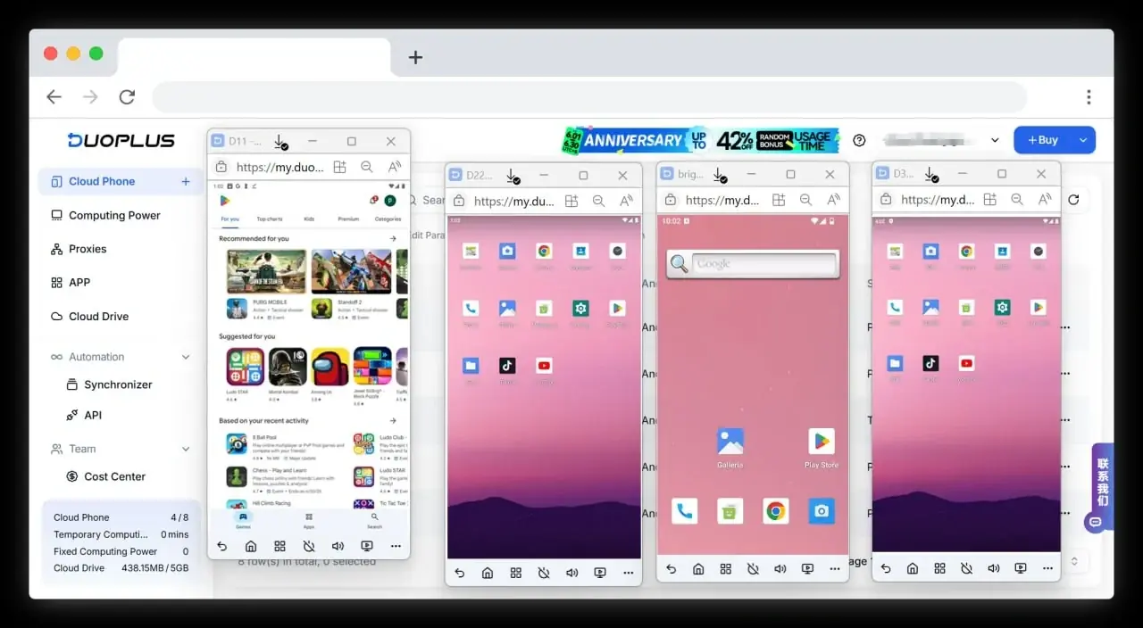DuoPlus — mogala wa cloud wa antidetekt wa ntlha bakeng sa diakhaonte tsa gago tse dintsi mo dinetwekeng tsa social.DuoPlus — ke tirelo ya mogala wa virtual ya cloud, e e tsamaisang sesebediso sa Android sa nnete mo cloud. Go fapana le diemulatore, mogala mongwe le mongwe wa DuoPlus o dira jaaka sesebediso se se ikemetseng se se nang le di-identifikara tse di ikgethang, se se netefatsang tshireletso e e kwa godimo le go ikarabela ga diakhaonte ka nepo.Ka DuoPlus o ka:Go simolola diakhaonte tse di sa lekanyediwang — e siametse thata bakeng sa e-commerce, go laola dinetweke tsa social, diplatfomo tsa dipotso le diporojeke tsa Web3. Go sala o le mo tshireletso le o sa bonwe — mogala mongwe le mongwe o ikemetse, se se fokotsang ditlhotlhe tsa go thibiwa le go tlamela ga diakhaonte. Go beakanya diprokisi tsa lefatshe lotlhe — amogela mafelo a a farologaneng mme o laole ditiragatso tsa go feta mo meeding ka boiketlo. Go dira ka tlhomo 24/7 — tshegetsa mesola, diboto kgotsa dipampasa ka go dira ka dinako tsotlhe ntle le go itekanela mo didirisweng tsa gago. Go dirisana ka boiketlo — abelana didirisiwa le sehlopha sa gago ka go tobetsa go le gontle. DuoPlus e dirisiwa thata bakeng sa TikTok, Facebook, Instagram, Telegram le ditiragatso tsa Web3, e neela di-environment tse di bohlale, tse di sireletsegileng le tse di ka oketsang bakeng sa ditiragatso tsa dijithale.Kgwedi ya mahala ya mogala wa cloud le khoutu e e oketsegang ya $2 ka khoutu ya promoshene: hiddence