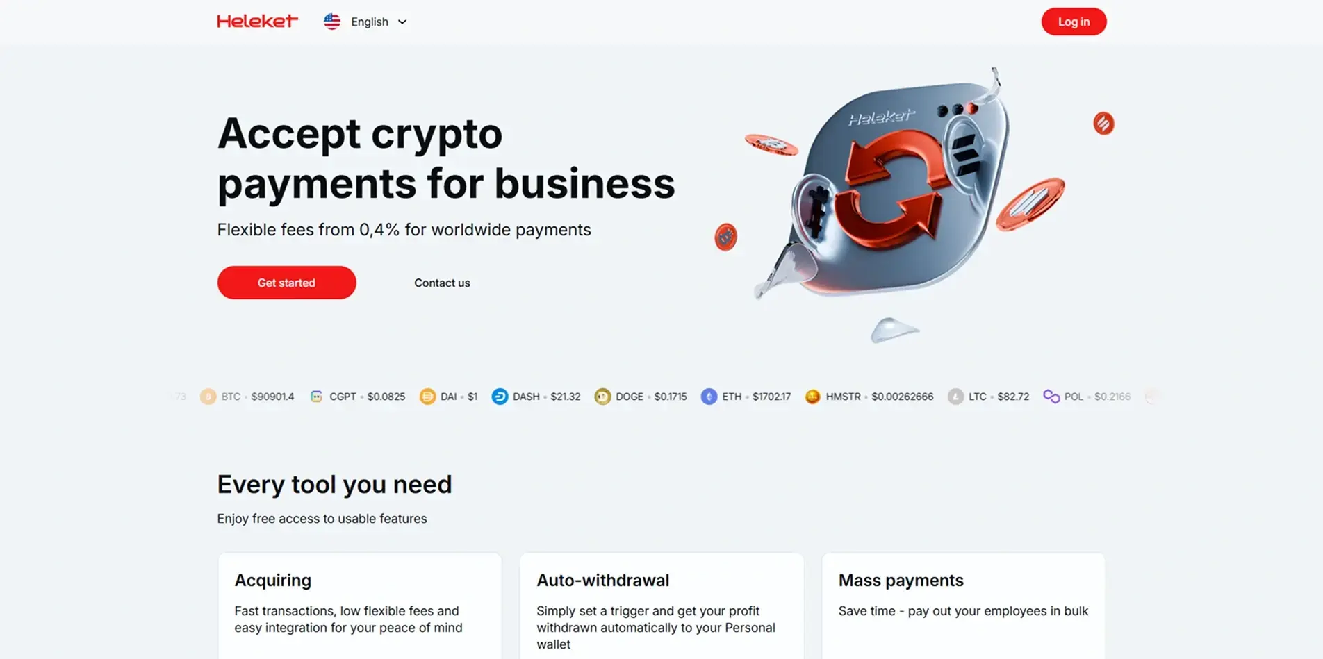 Heleket — kgoro ya tefo ya kripto bakeng sa kgwebo ka dikhomishene tse di molemo go tswa mo 0,4% le ditransekshene tsa yone nako. E tshegetsa BTC, ETH, USDT, BNB, MATIC le tse dingwe. Ntle le tefo ya go kgokaganya le dikhomishene tse di fitlhileng. E dira ntle le sepe mo palo le geolokeishene, tshegetso ya 24/7.Ditefo tsa kripto tsa yone nako — dikhomishene tse di fetofetogang le go nna le ditšhelete tse dintsi:Go amogela BTC, ETH, USDT le tse dingwe ntle le ditlhotlhe tse di oketsegang le sepe — fela o tsenya linki kgotsa o kopanya API mme o amogela tefo Khomishene go tswa mo 0,4%, ntle le tefo ya go kgokaganya — molemo go feta babangi ba bangata Ditransekshene tsa yone nako ka go akaretsa nepo ya dikhomishene le tshegetso ya 24/7 — ga go na go nna kwa morago mo go ntsheng madi Sehlopha sa didirisiwa bakeng sa go laola diaseti tsa kripto:Acquiring - Go amogela ditefo ka potlako ka dikhomishene tse dinnyane le go kopanngwa go bonolo mo porojekeng epe Auto-withdrawal - Tlhagiso e e ka beakanywang ya go ntsha phaello ka tlhomo mo waleteng ya poraefete — go boloka nako le taolo e tletseng Converter - Go fetola ka yone nako magareng ga dikriptotšhelete ntle le khomishene — go bonolo bakeng sa go fokotsa ditlhotlhe Auto-converter - Go fetola phaello ka tlhomo mo USDT ka theko e o e batlang — fokotsa go fetofetoga ga theko Payment fee accuracy - Go beakanya khomishene ka nepo: tlhomamisa nepo ya dipalo mme o oketse marzha mo transeksheneng nngwe le nngwe Go kopanngwa - go simolola go bonolo ka tsela epe:Tsebe ya tefo — tsebe e e siameng ya go amogela ditefo, e tsenngwa mo motsotsong mme ga e tlhoke khoutu Connect (H2H API) — foromo ya gago ya tefo ka taolo e tletseng ya UX le backend Static wallets & Invoices — dira diwalete tse di sa fetogeng le diakhaonte tsa poraefete bakeng sa moreki mongwe le mongwe ka API Dikeise tsa tiriso: E siametse diprokisi-VPN, dipapadi tsa inthanete, thekiso ya retail, diplatfomo tsa thuto le dikgwebo tse dingwe tsa dijithale — fela o tsenya tefo ya kripto mo porojekeng ya gagoDifeichara tse di ikgethang tsa Heleket:Di-plugin tse di siameng le PHP SDK — simolola mo CMS le difreyimeweke tse di tsebahalang ntle le tshireletso e e oketsegang Mothusi wa poraefete 24/7 — baithuti ba phelang ba tla thusa ka go beakanya le go rarabolla dipotso tse di farologaneng Konvertara ya yone nako ntle le dikhomishene le auto-converter ka kemiso ya gago Go beakanya dikhomishene ka nepo — amogela go feta mo transeksheneng nngwe le nngwe Heleket — fa kriptotšhelete e dira bakeng sa kgolo ya kgwebo ya gago.